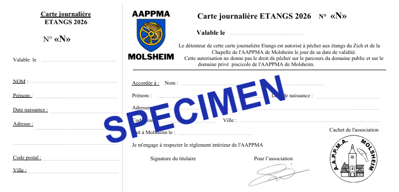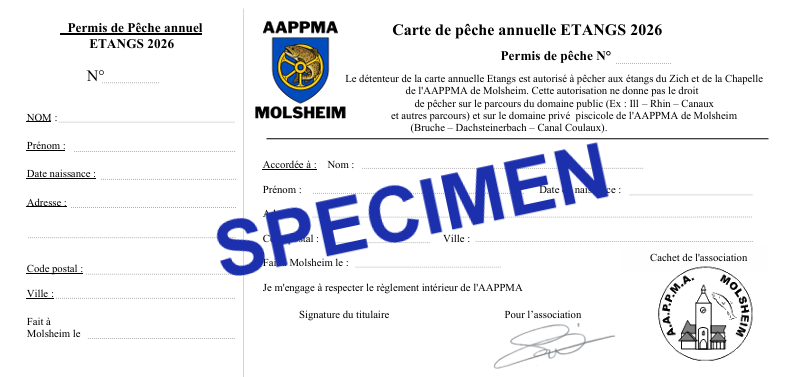 Depuis 2023, ces 2 cartes ont été regroupé pour n'en former qu'une, que se soit pour la carte Loisirs ou la carte journalière de l'association. Ces cartes Loisirs annuelles ou journalières permettent dorénevant de pêcher sur tous les étangs de l'association, (étangs du Zich à Molsheim et étang de la Chapelle à Mutzig).