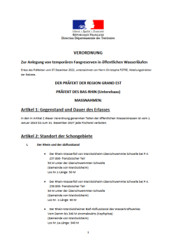 Verordnung zur Anlegung von temporären Fangreserven in öffentlichen Wasserlaüfen Jahr 2023