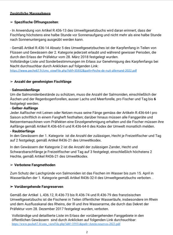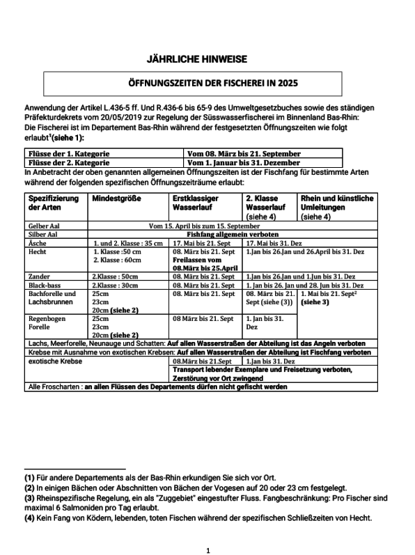 Jährliche Hinweise - Regelung der Fischerei im Département Bas-Rhin Jahr 2025